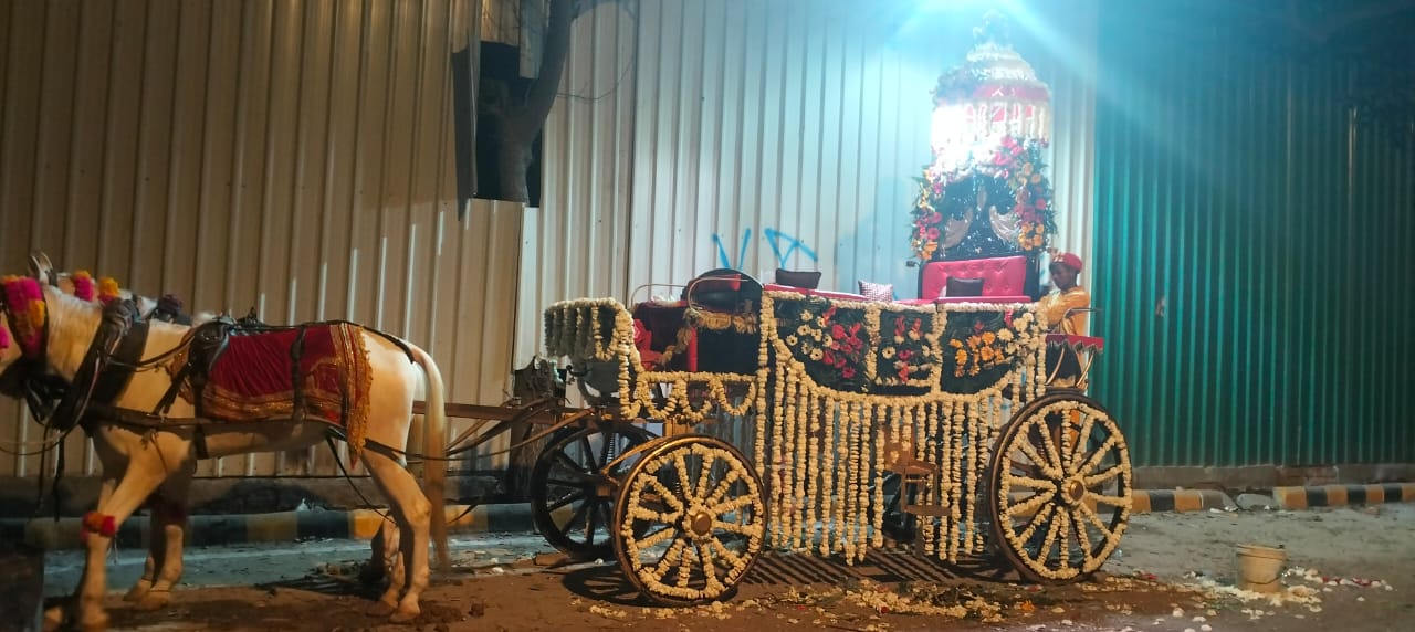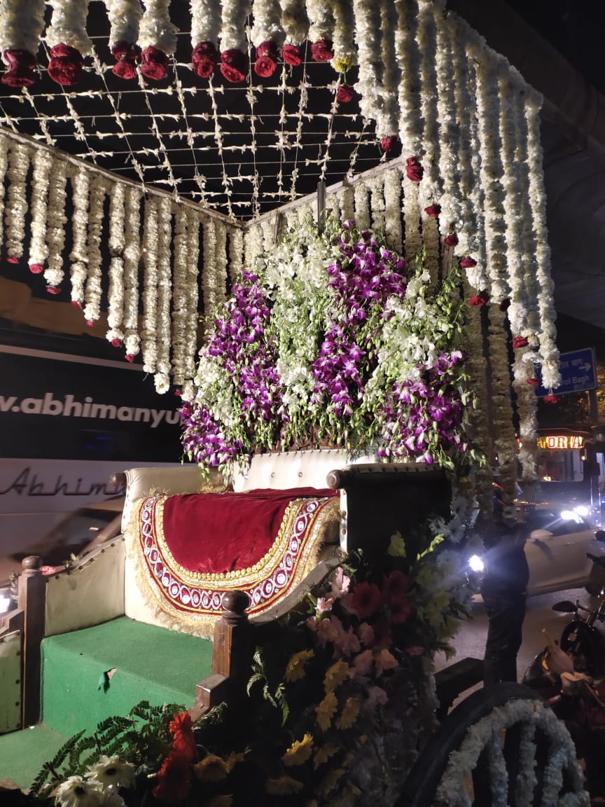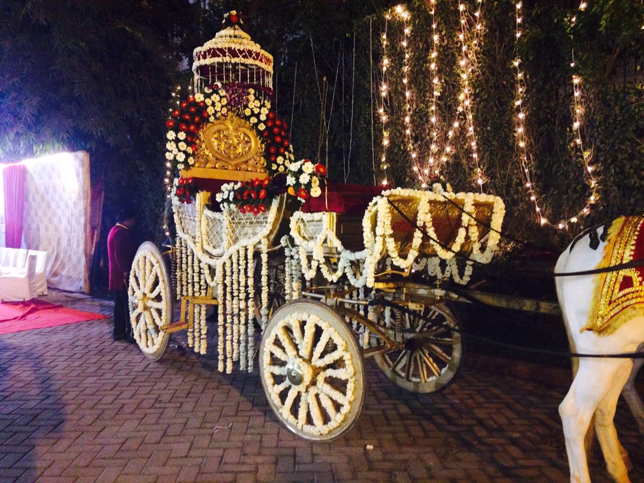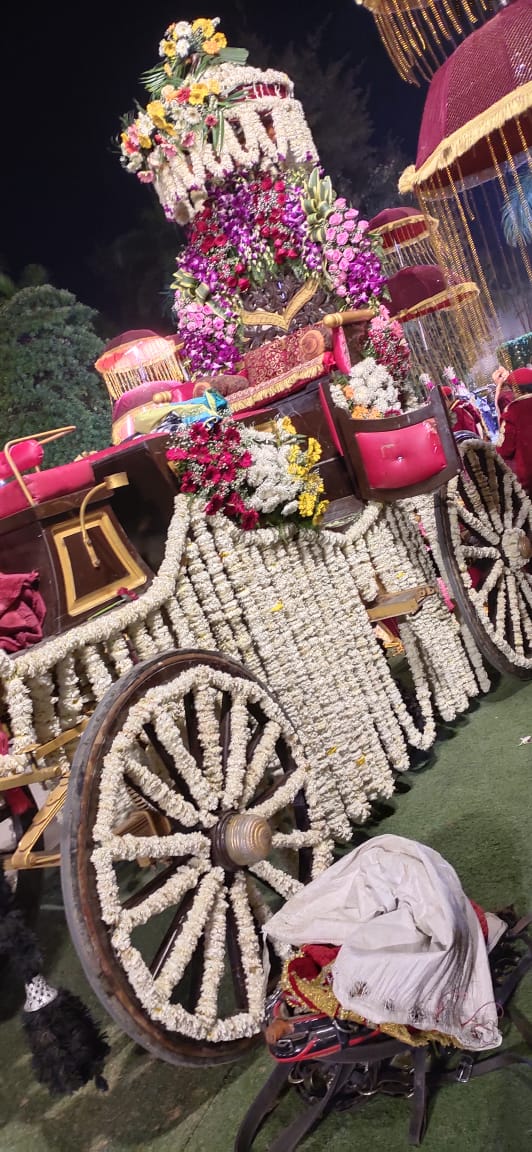 We Serve Our Clients With Orchid Flower Decorated Baggi, Wedding Chariots and Marriage Baggi.