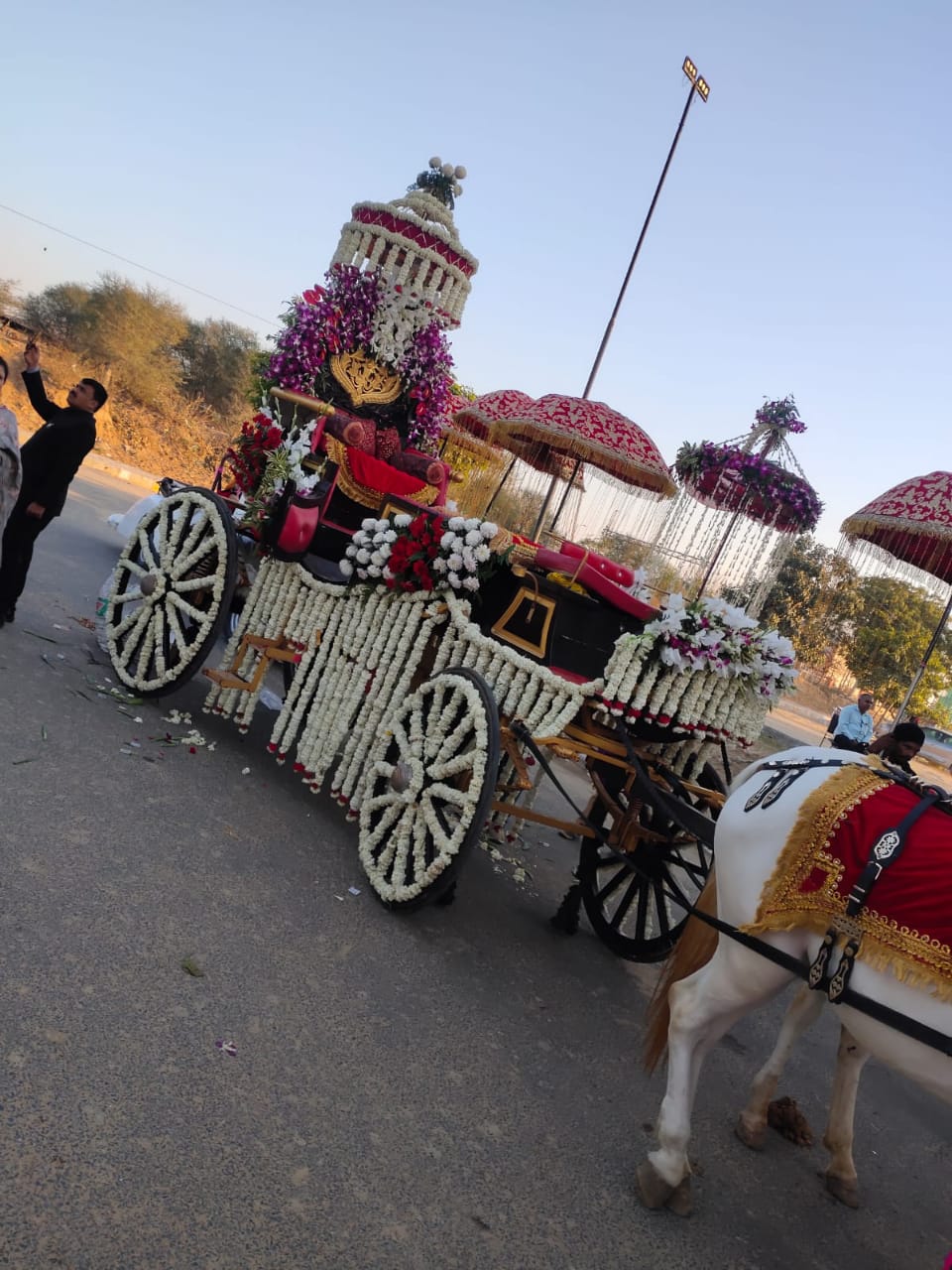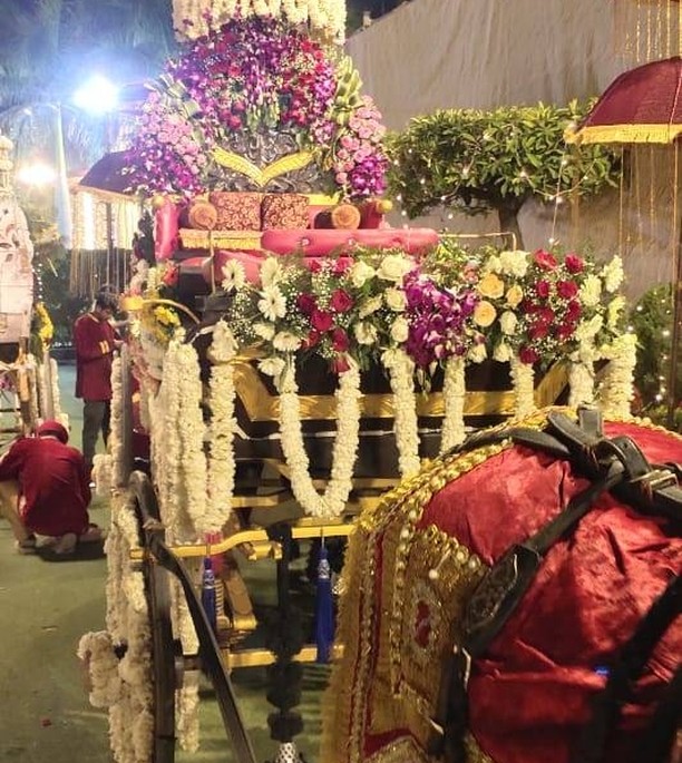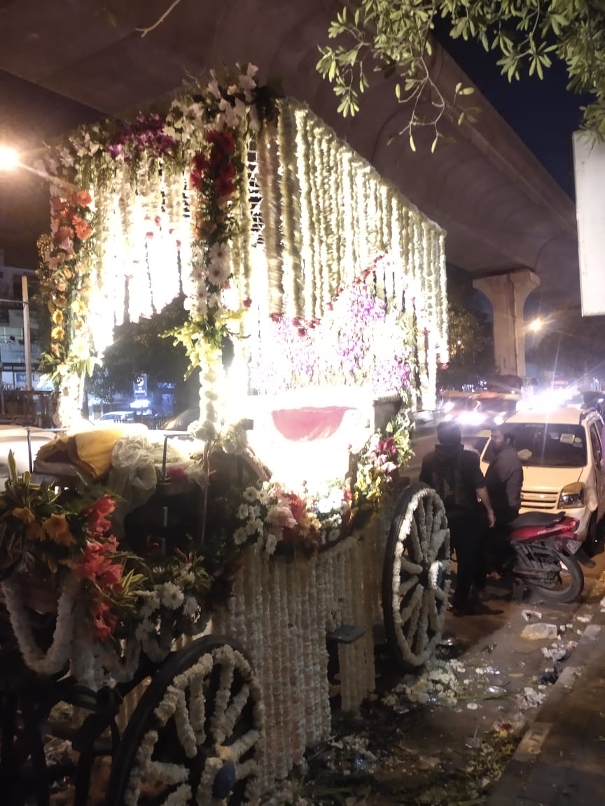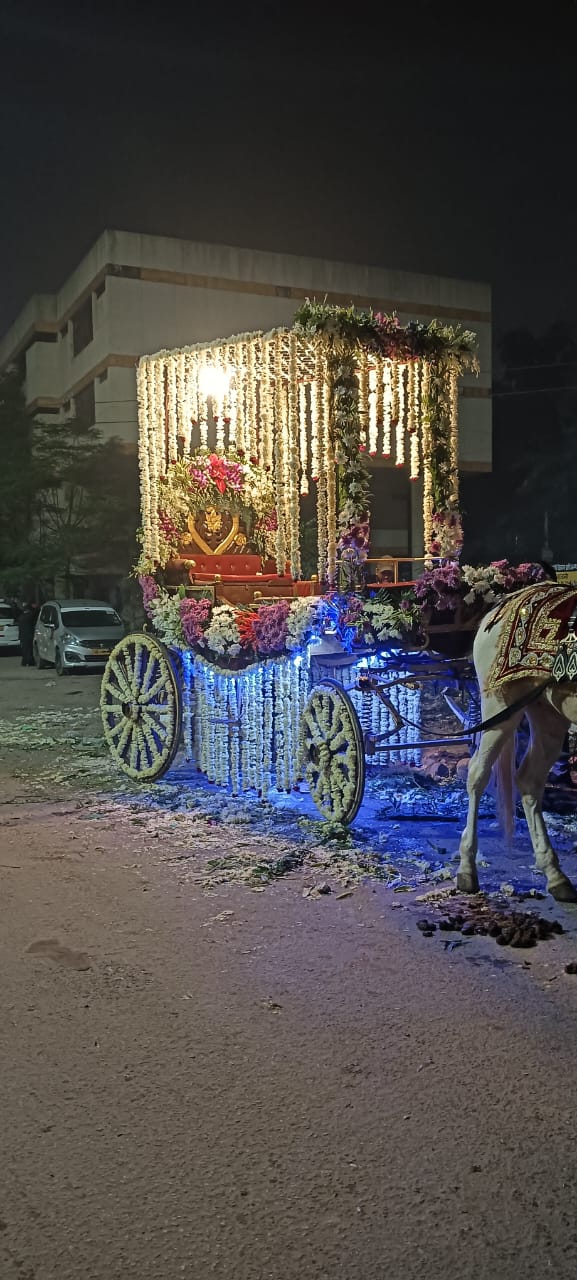 We Serve Our Clients With Orchid Flower Decorated Baggi, Wedding Chariots and Marriage Baggi.